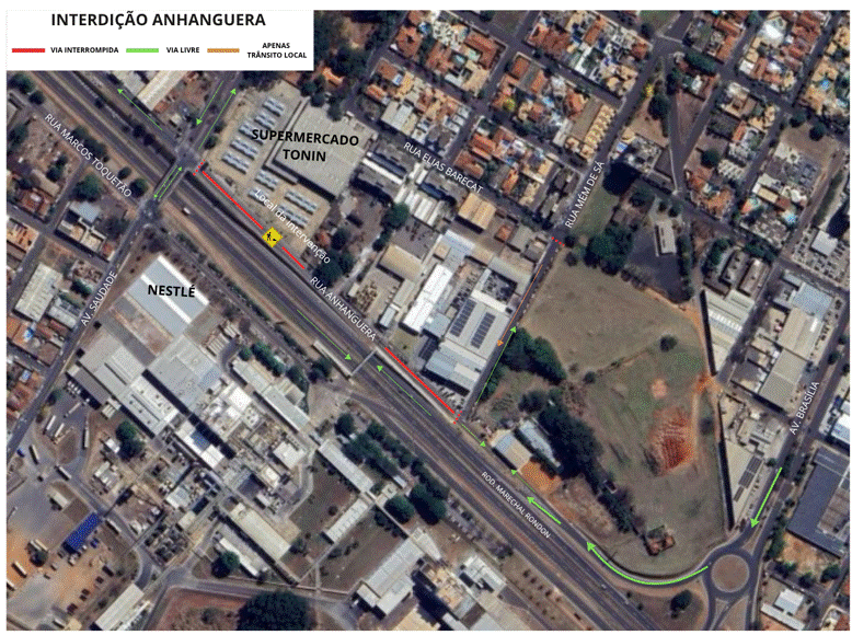A opção para os motoristas é fazer o desvio pela Rua Mem de Sá ou acessar a Rodovia Marechal Rondon na saída após a Avenida Brasília.