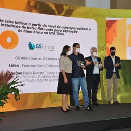 O projeto vitorioso Gestão da crise hídrica a partir do nível de cota operacional e instalação de balsa flutuante para captação de água bruta na ETA Tietê rendeu o primeiro lugar na categoria Gestão e Governança para a equipe formada por Francino Costa Palhares da Silva (líder), Gustavo Henrique Assis Borim, Rafael Augusto Fenerich e Paulo Renato Toledo Lourencini, da GS Inima Samar, de Araçatuba (SP). A empresa também ocupou o segundo lugar na categoria Sociedade e Consumidores com o projeto Saneamento Rural em Jacutinga, com ações de apoio à comunidade do bairro rural de Araçatuba para gestão dos seus sistemas de abastecimento de água e esgotamento sanitário. A equipe criadora do projeto é formada por Francino Costa Palhares da Silva (líder), Gustavo Henrique Assis Borim, Giuliana Carolina Talamini, Andrea Barreto dos Santos Silva e Isadora Natal Paludetto.
