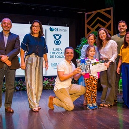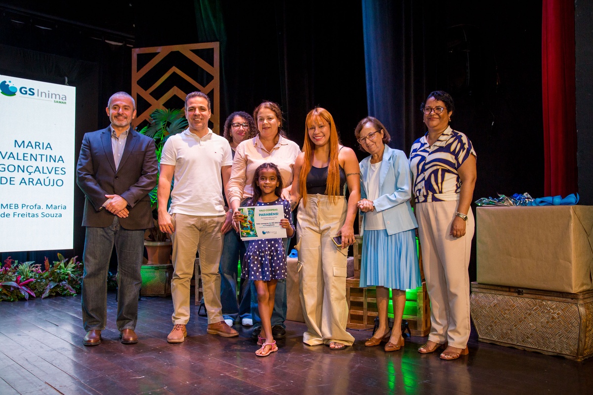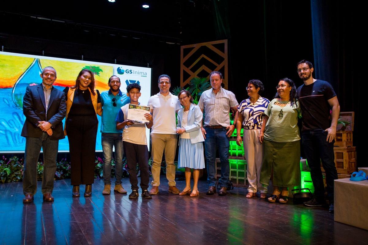 Este ano, o evento foi realizado no Teatro Castro Alves, no Centro, e contou com a participação de 120 alunos de cinco escolas municipais, além de autoridades, como o prefeito Lucas Zanatta, a presidente da Câmara, Edna Flor, a secretaria de Educação, Heloísa Helena Vieira de Melo e o diretor-técnico da GS Inima SAMAR, Eduardo Caldeira, e demais representantes da Prefeitura.