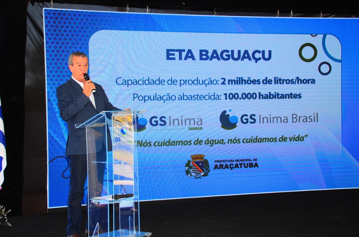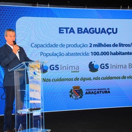 A GS Inima SAMAR, concessionária de água e esgoto de Araçatuba, inaugurou nesta quarta-feira (21 de junho) a maior obra do saneamento básico da história do município. A Estação de Tratamento de Água (ETA) Baguaçu teve um investimento de R$ 48 milhões e possui capacidade para abastecer 100 mil habitantes (50% da população de Araçatuba).