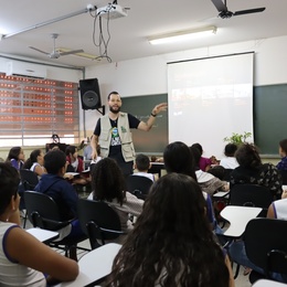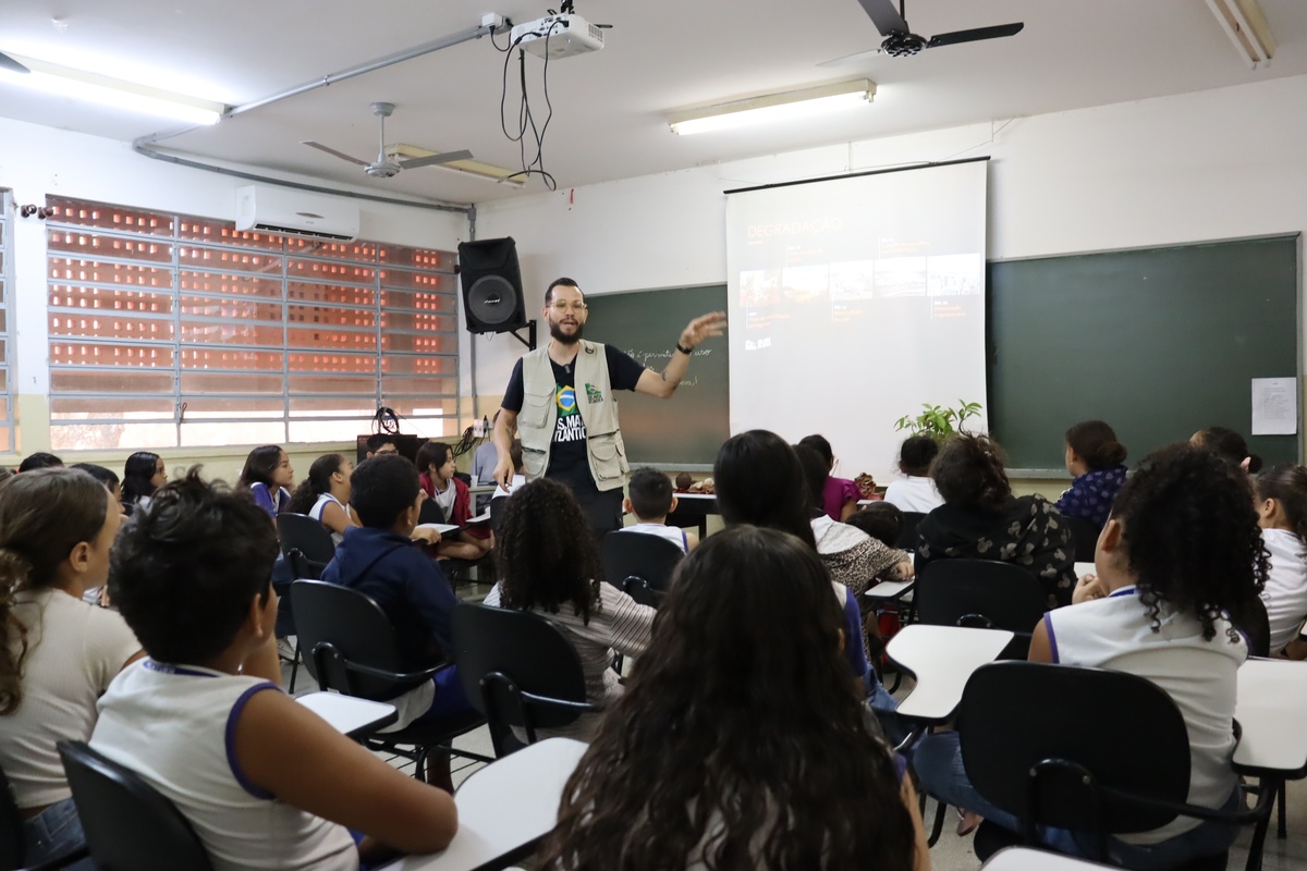 Este ano, o técnico em Restauração Florestal, da ONG SOS Mata Atlântica, Loan Ramos, foi convidado para conversar com os estudantes sobre o bioma da região de Araçatuba, importância de plantar árvores e desafios encontrados na preservação do meio ambiente.