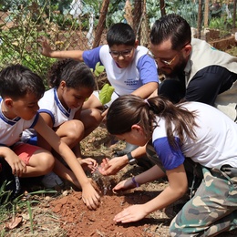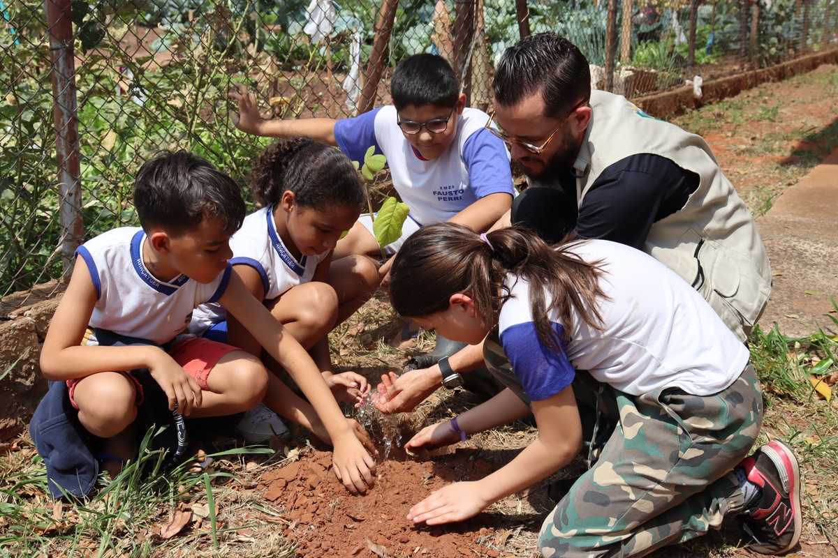 Alguns espaços da EMEB Prof. Fausto Perri foram selecionados e receberam 20 mudas de árvores, que serão cuidadas pelos próprios alunos ao longo dos dias. Com entusiasmo e curiosidade, grupos foram formados para a realização do plantio e serão responsáveis por cuidar das árvores durante as atividades da escola.