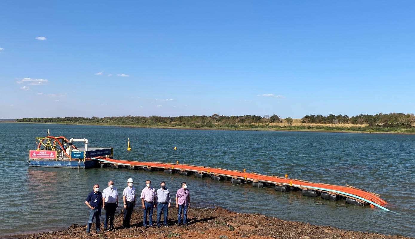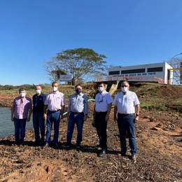 A balsa da GS Inima SAMAR para captação de água do Rio Tietê já está preparada caso o nível do rio reduza durante este período de estiagem. Nesta terça-feira (31/08) o diretor-presidente da concessionária de água e esgoto de Araçatuba, Paulo Roberto de Oliveira, o diretor técnico Eduardo Caldeira, o prefeito Dilador Borges e os comissários da AGRF (Agência Reguladora e Fiscalizadora DAEA) Marcio Saito e Petrônio Lima estiveram na captação para colocar a balsa em funcionamento.