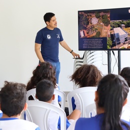 A programação inclui uma apresentação conduzida por um biólogo especialista, que explica de maneira lúdica e acessível todas as etapas do tratamento da água. Os alunos também fazem um percurso guiado pelas áreas inferiores e superiores da ETA, acompanhando de perto os processos, equipamentos e estruturas que garantem a qualidade da água distribuída ao município.