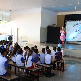 A vice-prefeita Edna Flor aproveitou um globo terrestre que fazia parte do cenário da apresentação para explicar às crianças a importância da água e como ela poderia ser retratada nos desenhos. “Estão vendo toda essa cor azul? Ela representa a quantidade de água que temos no planeta, mesmo assim, ela é insuficiente. Nos desenhos, vocês podem mostrar como é possível manter todo esse azul do planeta e garantir a preservação da água”, sugeriu.