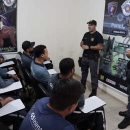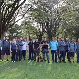 Colaboradores da GS Inima SAMAR que fazem a leitura do consumo de água dos imóveis participaram na segunda-feira (10/07) de um treinamento no canil do 12º BAEP (Batalhão de Ações Especiais de Polícia). Ministrado pelos policiais militares Sargento Bono, Cabo Kitadani, Cabo Glauber, o treinamento teve como objetivo reforçar orientações sobre ataques de cães e como se defender.