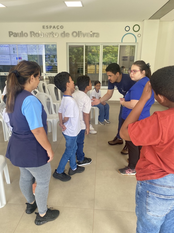 As crianças visitam ainda os tanques da ETA Baguaçu onde a água captada do Ribeirão Baguaçu é tratada e enviada para abastecimento de 50% da cidade.