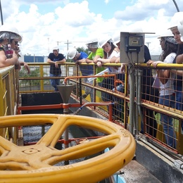 Visita de universitários. Desta vez, parte da turma de Medicina do Unisalesiano conheceu todo processo de tratamento da água na ETA-Tietê. Araçatuba é a primeira cidade não ribeirinha a captar, tratar e distribuir água do rio Tietê para a população. Uma adutora de mais de 10 km é a responsável por trazer a água do rio diretamente para a Eta.