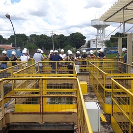 Visita de universitários. Desta vez, parte da turma de Medicina do Unisalesiano conheceu todo processo de tratamento da água na ETA-Tietê.